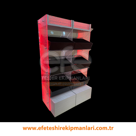 SİYAH VE ŞEFFAF RENK SEÇENEKLERİ BULUNAN LOKUM STANDI TERCİHE GÖRE LEDLİ YAPILABİLİR.